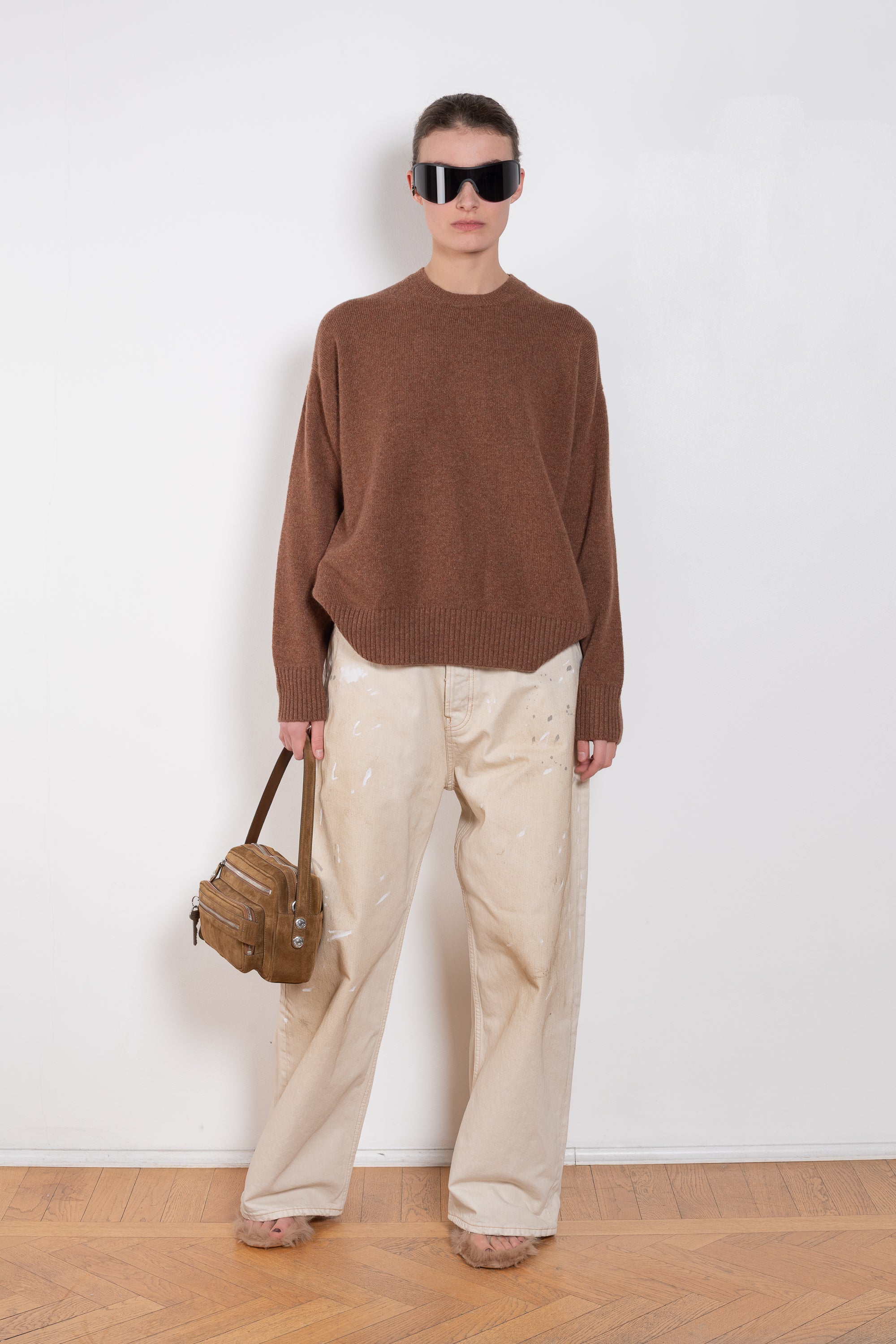 The Super Baggy Jeans 2023 by Acne Studios are crafted from non-stretch ecru denim with a light wash and stained tint, finished with hand-applied paint marks for an authentic dirty effect. 2023 jeans are cut to a loose fit with a low-rise waist, super baggy legs, and long length.