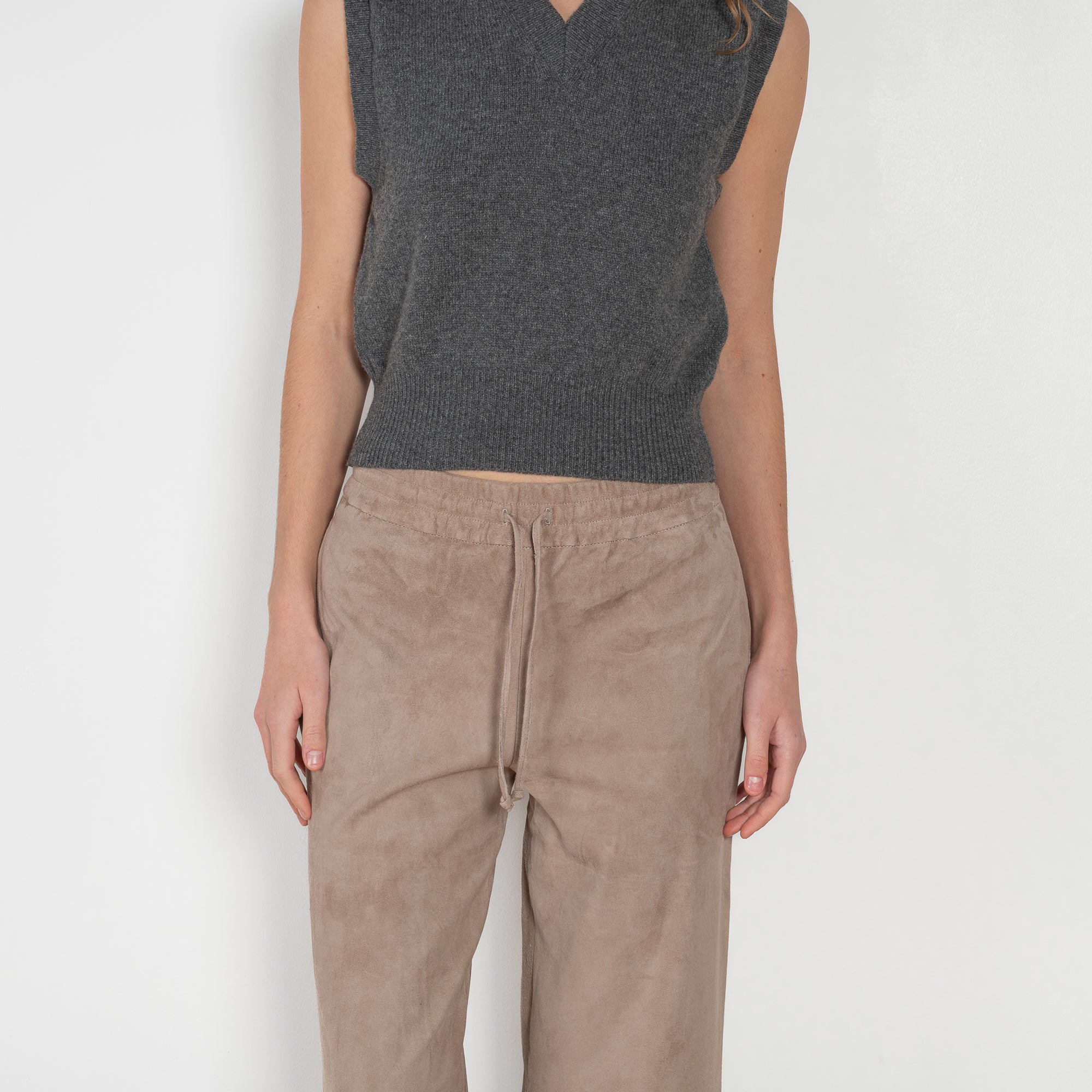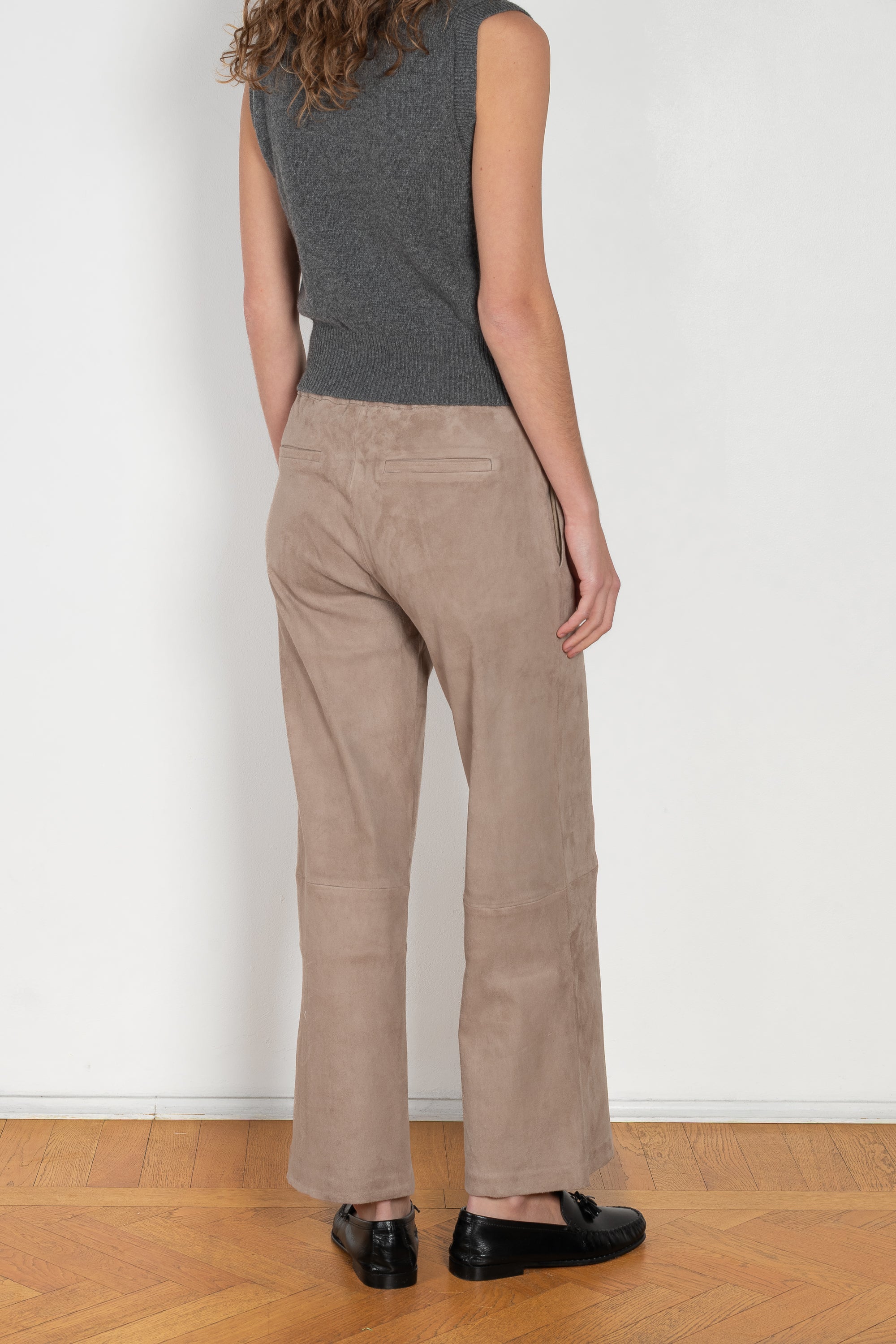 The Blair Suede Trouser by Arma is crafted from 100% soft, stretch lamb suede, combining luxurious comfort with a contemporary wide-leg silhouette. Designed for ease and elegance, these trousers offer a wide fit that moves with you.