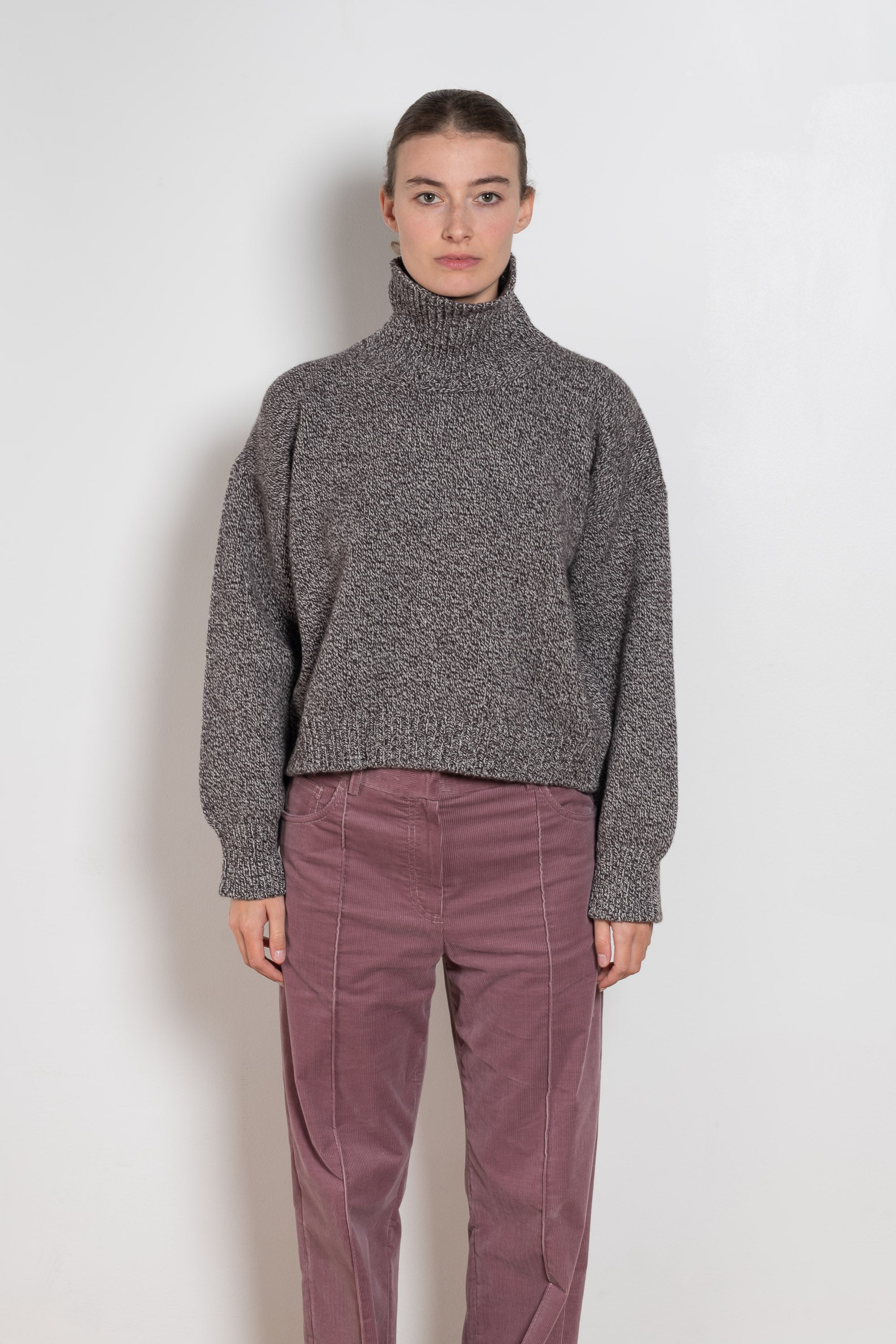The Caragh Chuncky High Neck by & DAUGHTER is is crafted on a 3-needle knitting machine which makes it a slightly heavier weight with a beautiful, tactile size of stitch. The more yarn a sweater has in it, the softer it is, as well as incredible warmth, the Caragh has a buttery softness which makes it a joy to wear.