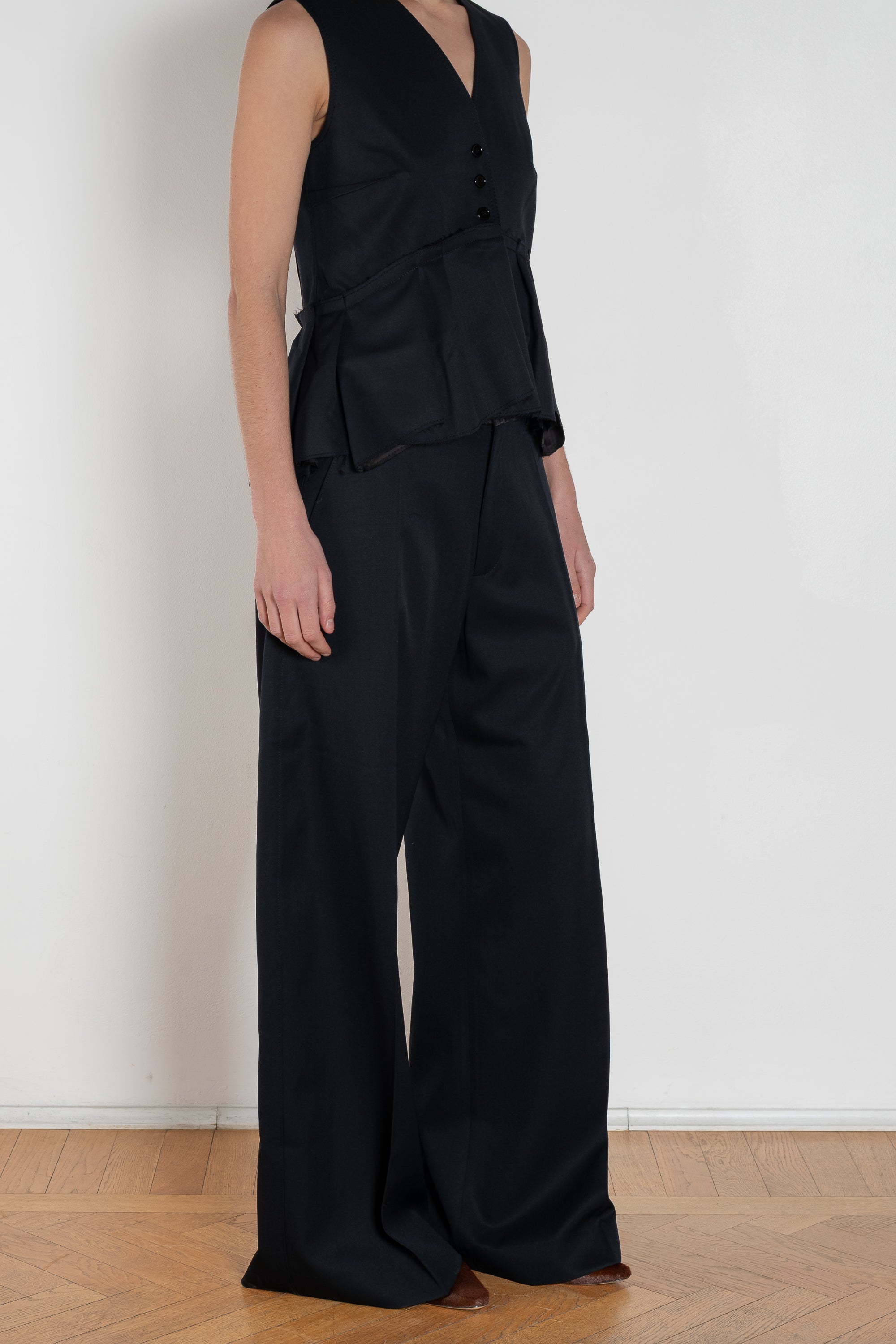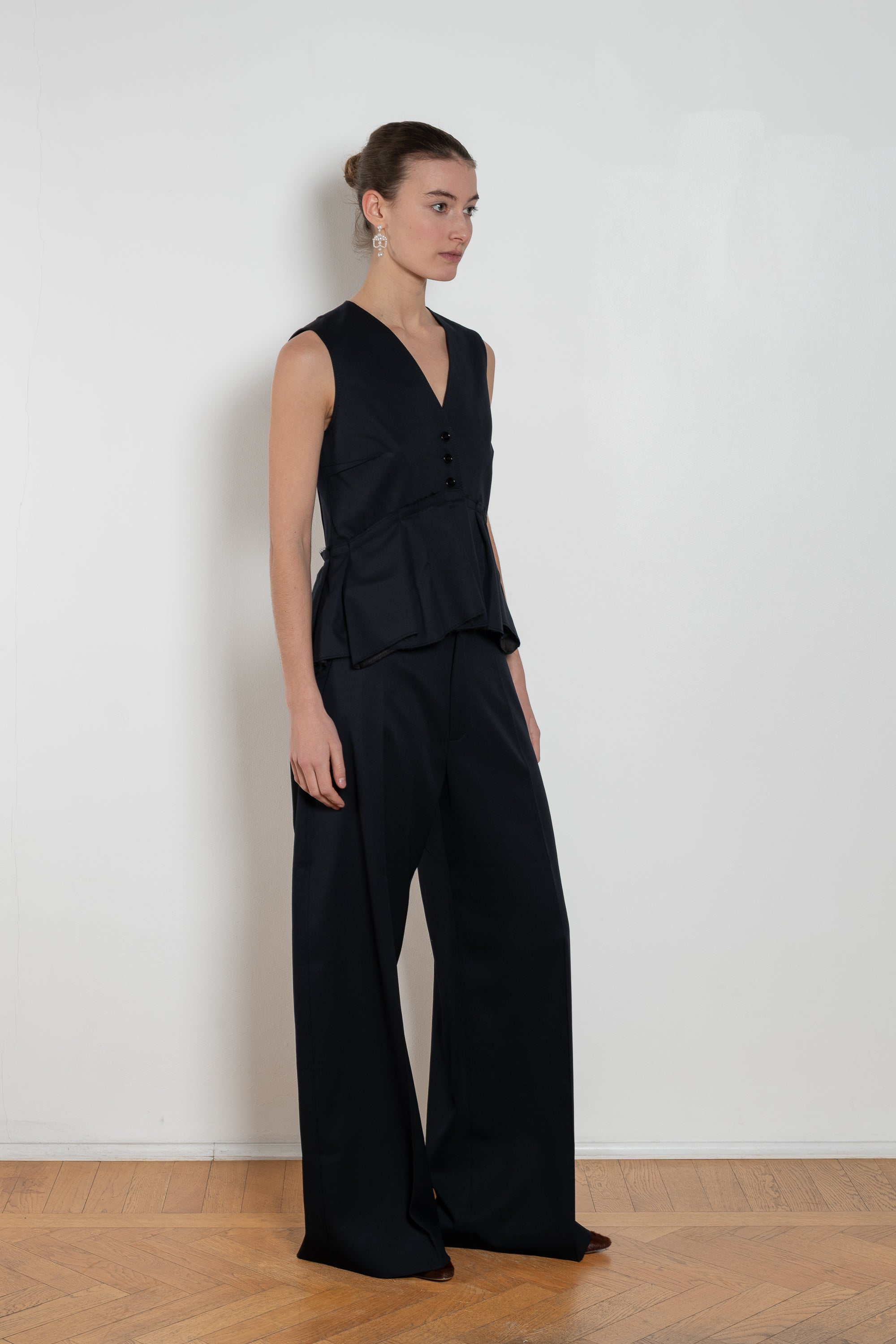 The Hutton Pant by Nackiye is a mid rise waist and wide-leg silhouette, they create an elongated, fluid line that moves beautifully. Minimalist tailoring and clean finishes emphasize modern simplicity, while belt loops and a classic front closure ensure practicality and versatility.