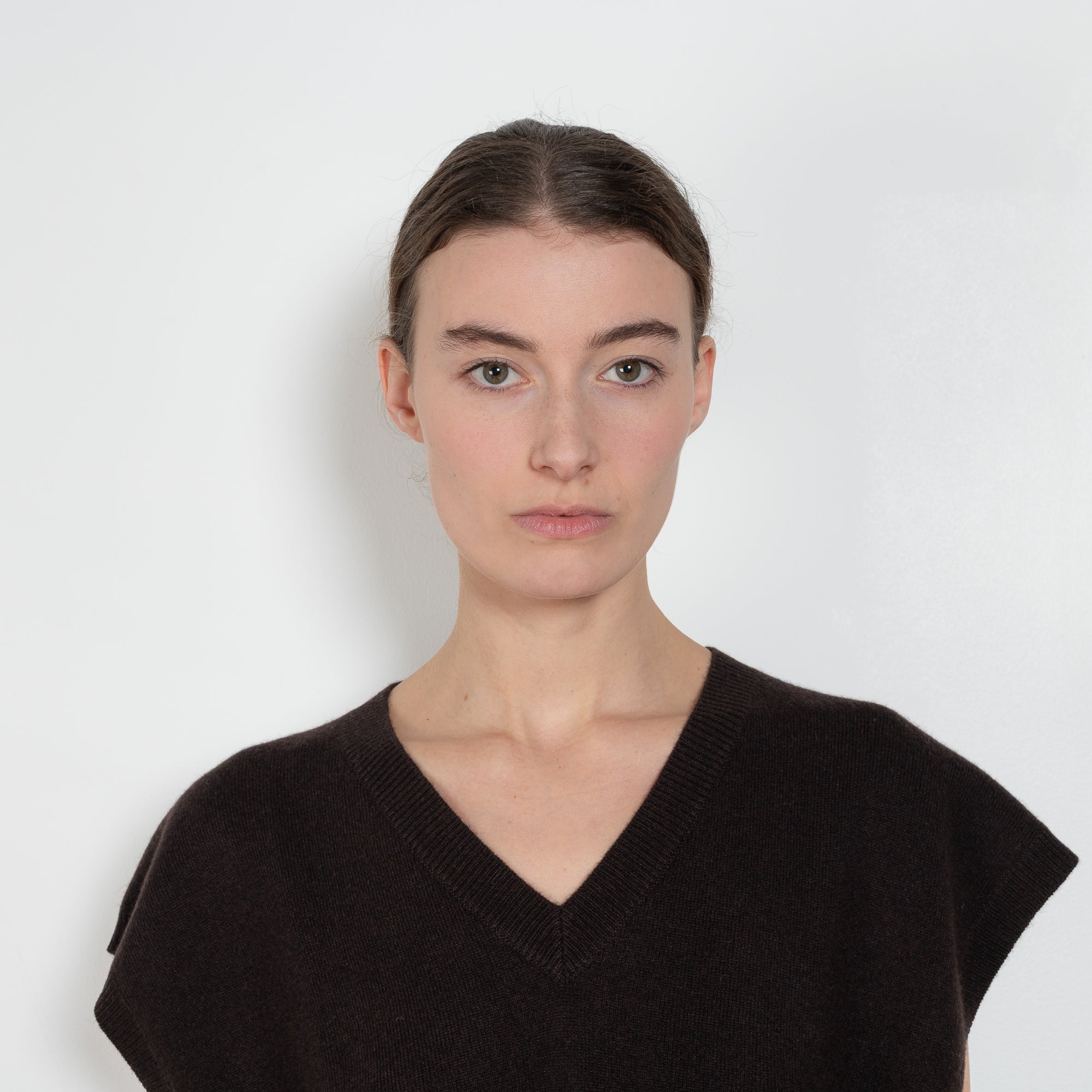 The Navarra Vest by Lisa Yang has a clean V-neckline and capped sleeves that slope off your shoulders.
