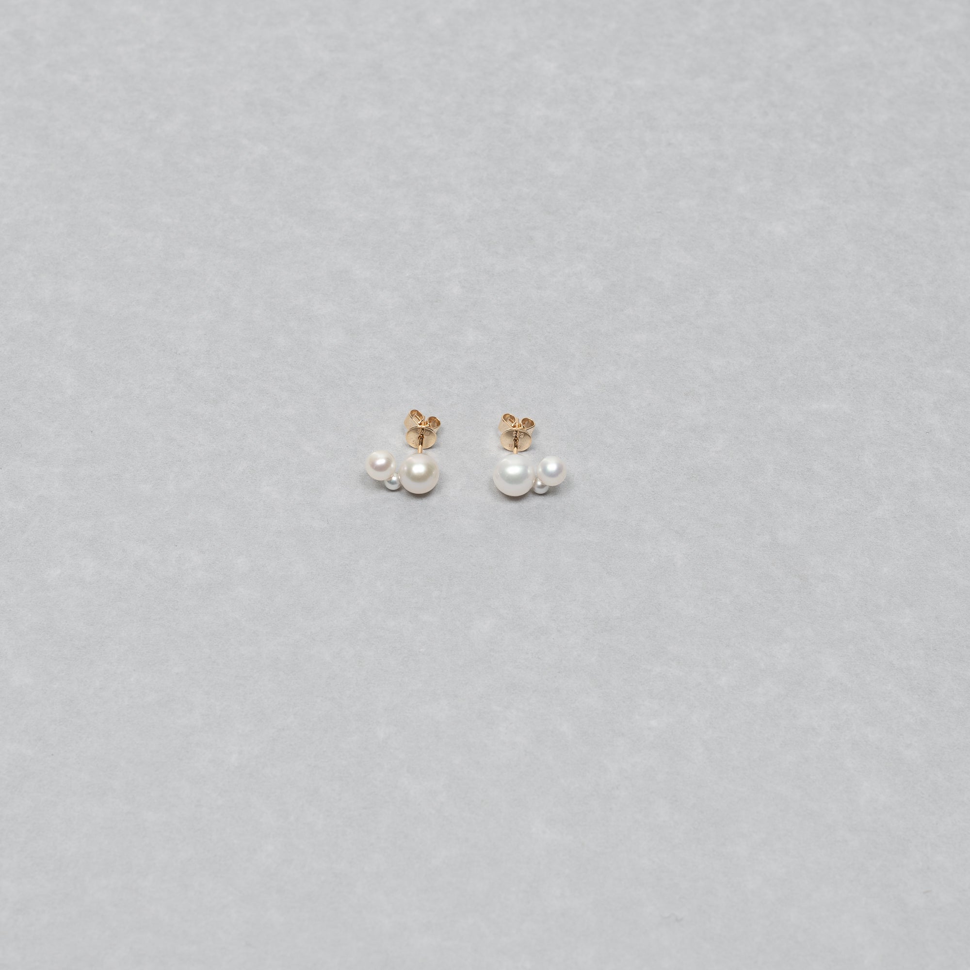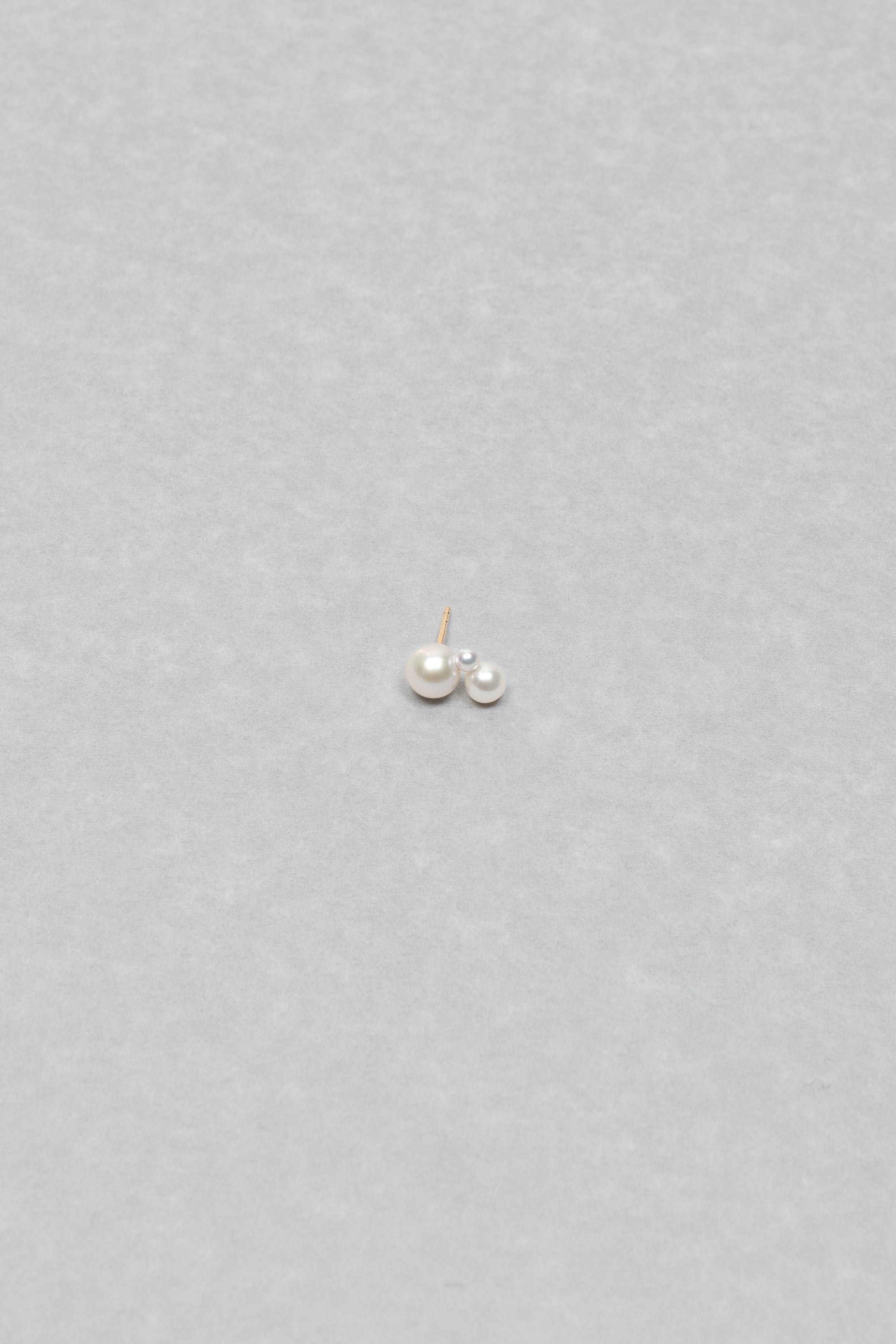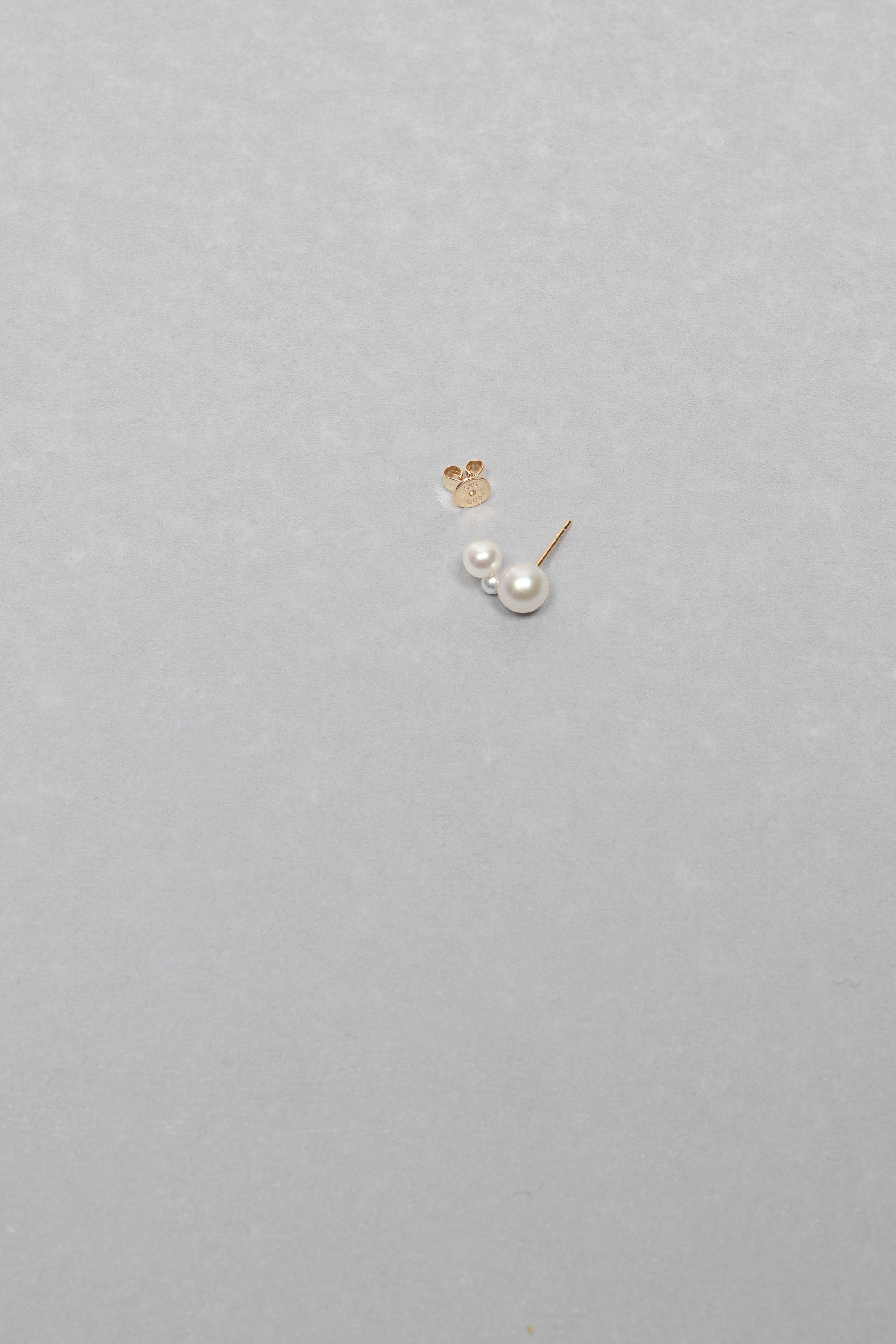 The Petite Stellari by Sophie Bille Brahe is a delicate single earring with three pearls varying in size clustered on the earlobe. Wear this earring on its own or style it with a larger pearl earring from the collection.