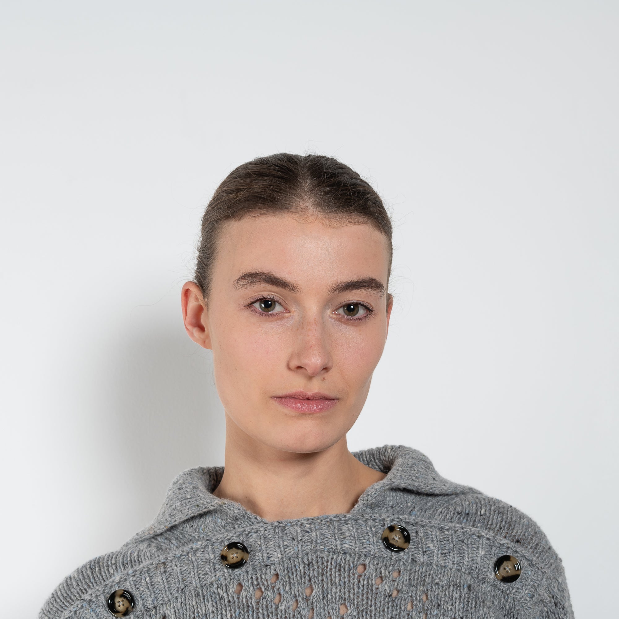 The Shrunken Sailor Sweater by Meryll Rogge is a cropped sweater with a sailor neck and buttons in front