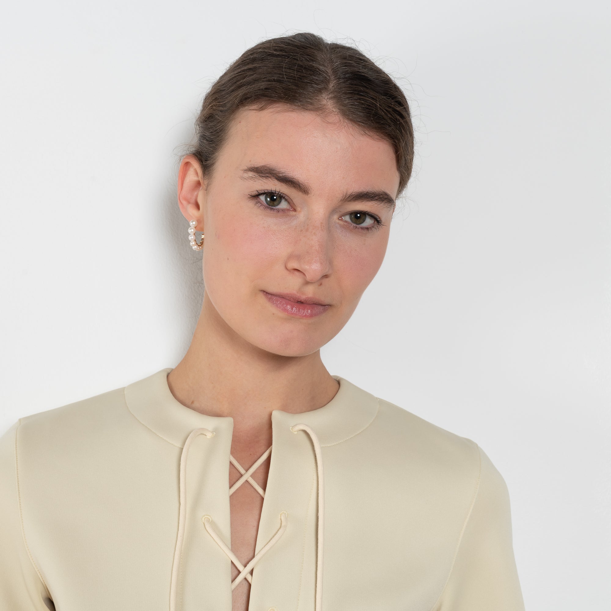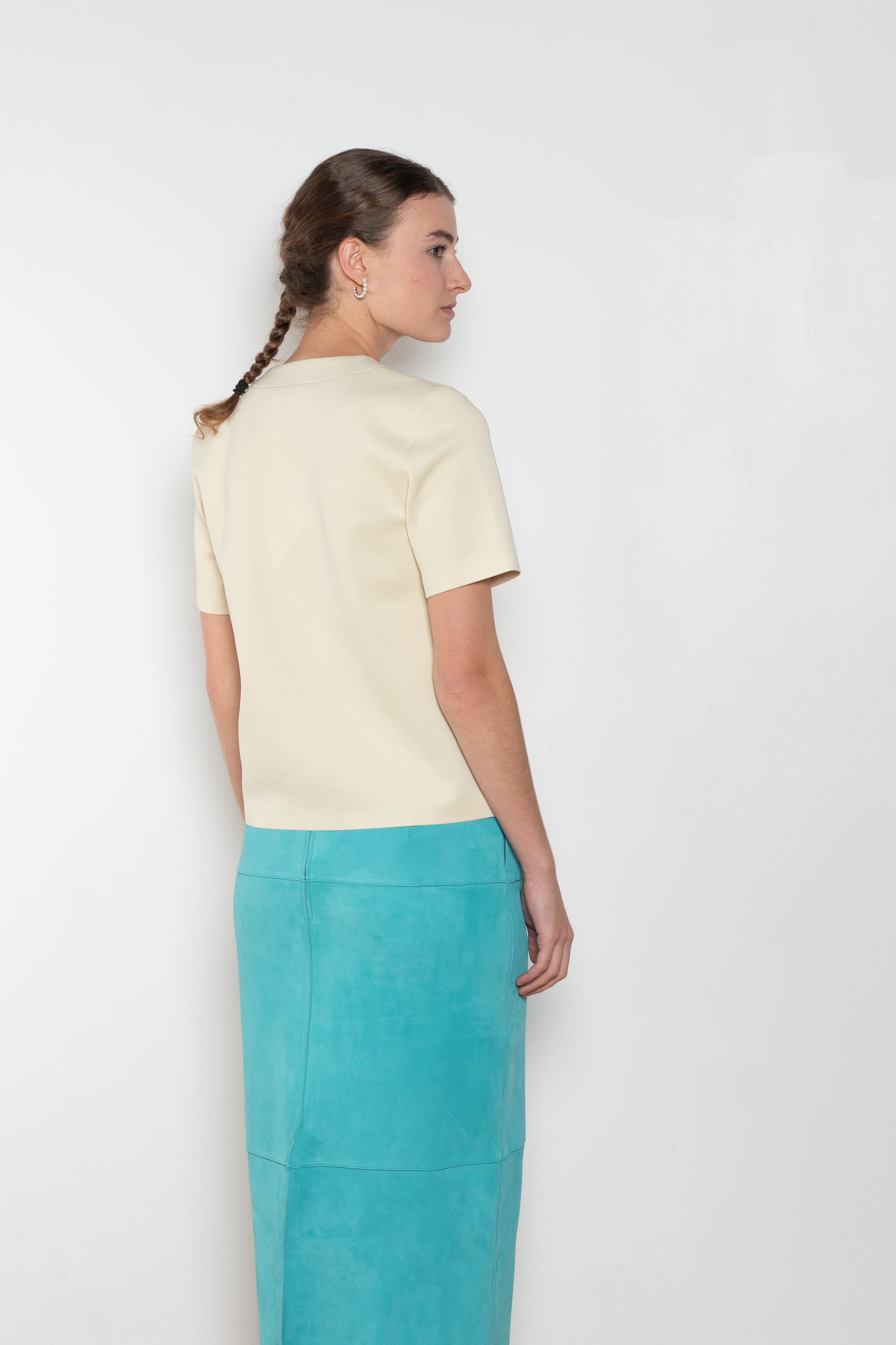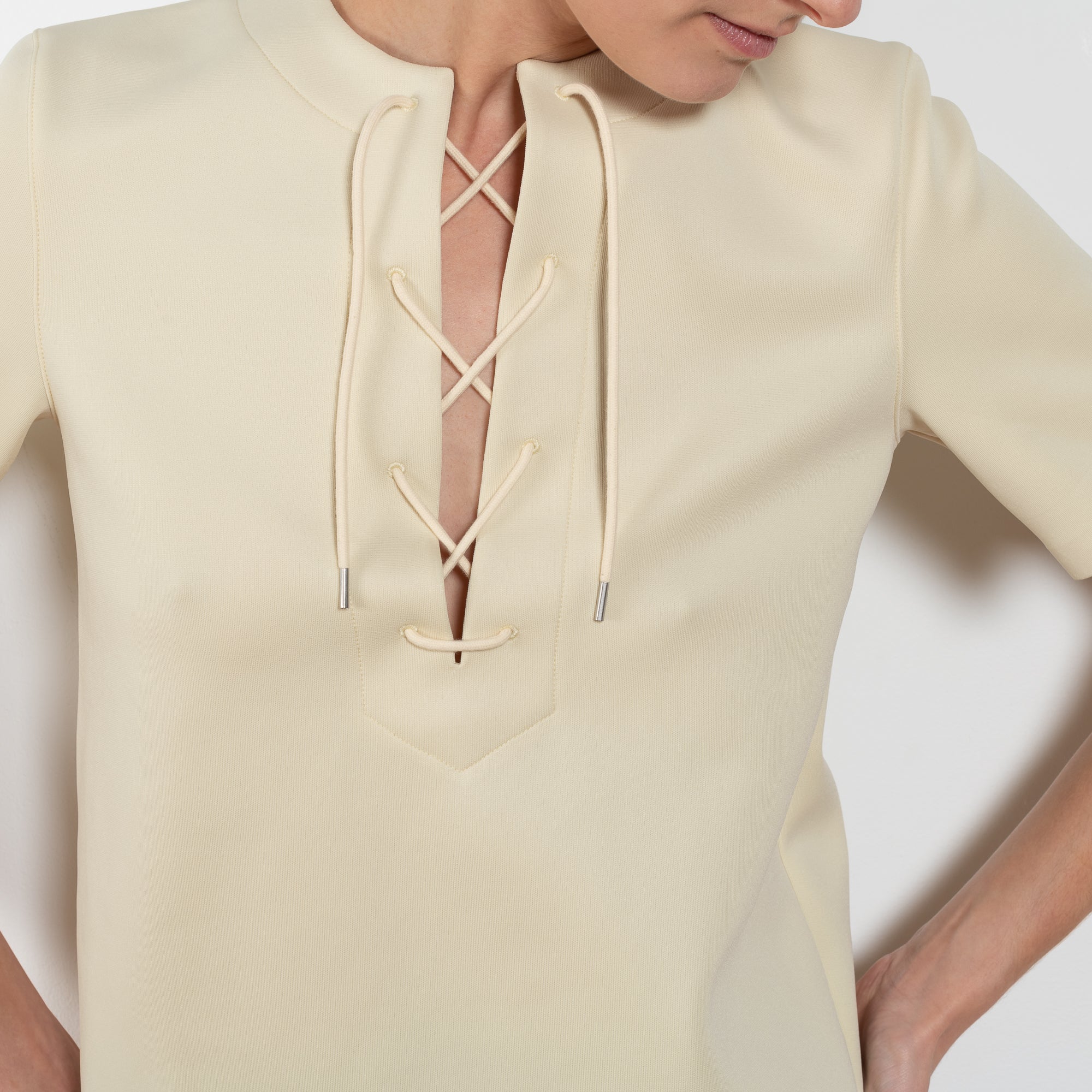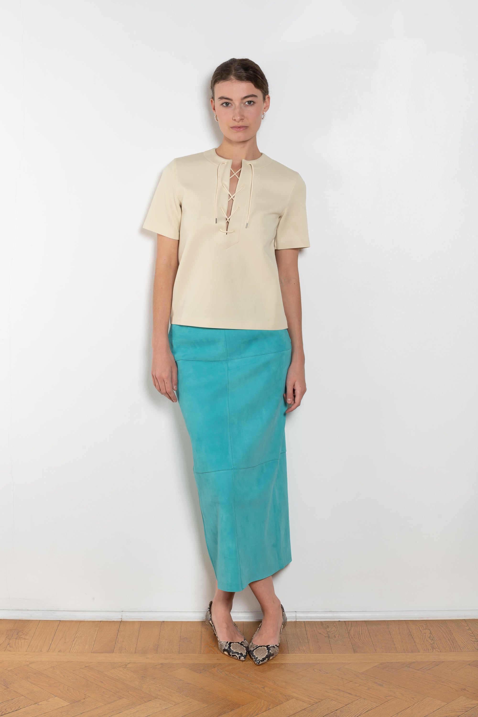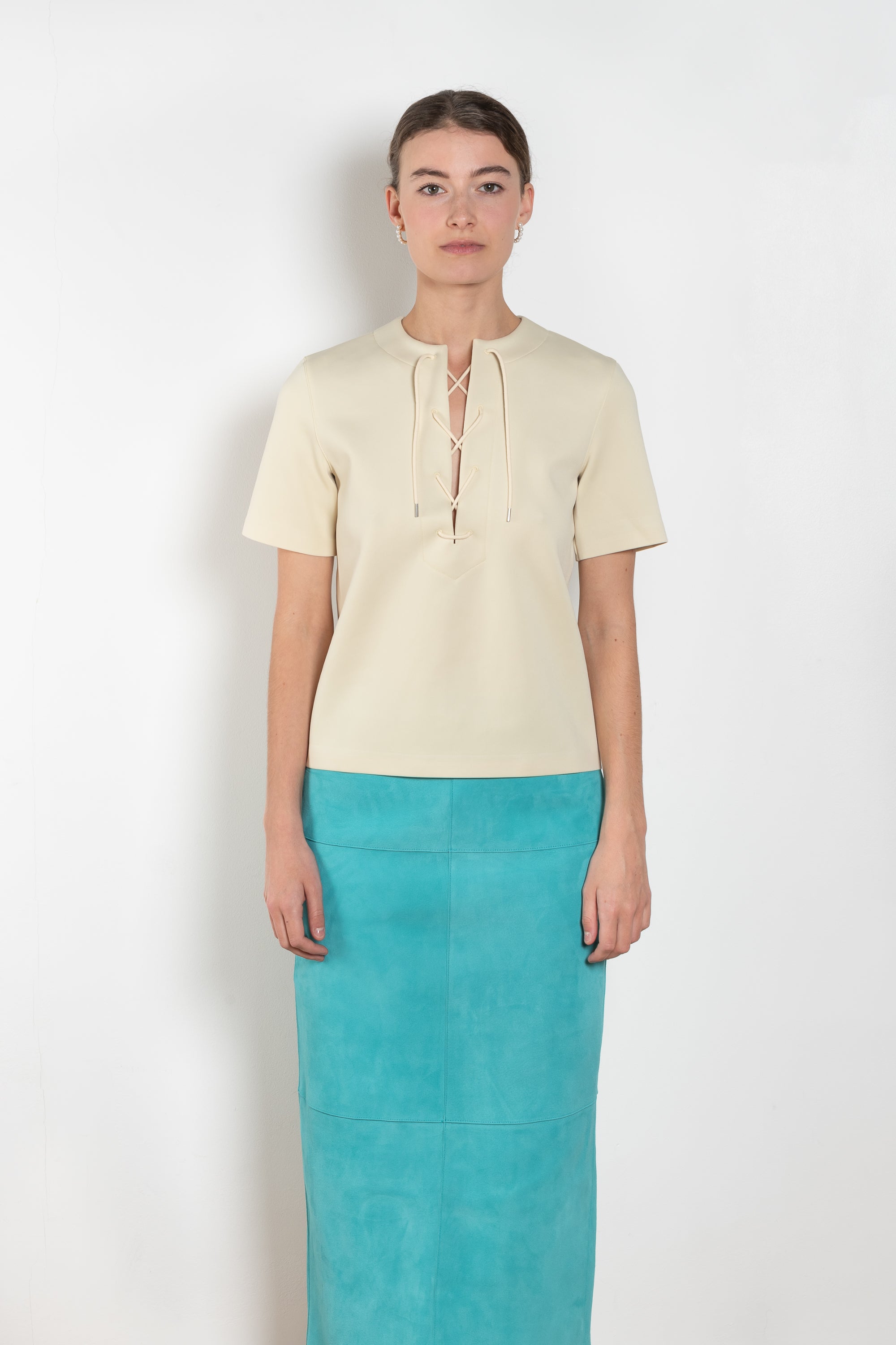 The Tied Neck Top by Auralee is a structured top with a tied neckline detail